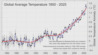In 2025, global average temperatures were estimated to be between 1.35°C and 1.53°C above the 1850–1900 pre-industrial baseline. While slightly lower than the peaks seen in 2024 ($1.46\text{--}1.62\text{°C}$) and 2023 ($1.48\text{--}1.60\text{°C}$), the data underscores a persistent breach of, or proximity to, the 1.5°C threshold established by the Paris Agreement.